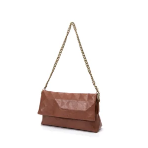 Isadora shoulder bag is a soft, fold-over style handbag with a distinct chunky chain strap. The bag has a minimalist yet modern design, making it a versatile accessory that can transition from day to night.